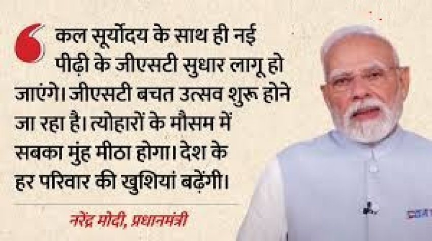प्रधानमंत्री नरेंद्र मोदी ने रविवार रात राष्ट्र के नाम ऐतिहासिक संबोधन में घोषणा की कि 22 सितंबर से देशभर में ‘GST बचत उत्सव’ आरंभ हो रहा है। प्रधानमंत्री ने कहा, “हमने जीएसटी ढांचे को और सरल, सुगम और नागरिक हितैषी बनाया है। इससे हर परिवार को पूरे साल करीब 2.5 लाख करोड़ रुपये की सीधी बचत होगी।”