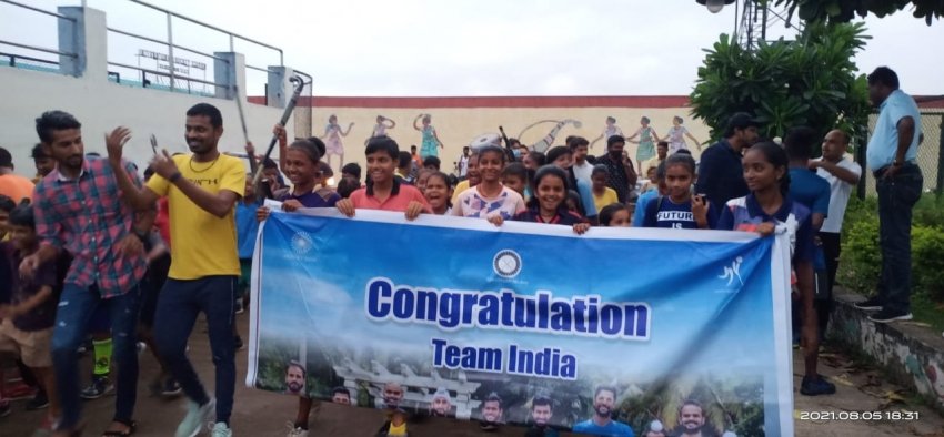 इसके पूर्व भारतीय हॉकी टीम की जीत पर शहर के गौरव पथ स्थित अंतर्राष्ट्रीय हॉकी स्टेडियम में भी राज्य युवा आयोग के अध्यक्ष जितेन्द्र मुदलियार, छत्तीसगढ हॉकी संघ के अध्यक्ष फिरोज अंसारी, कुतबुद्दीन सोलंकी, रमेश डाकलिया, एलेक्सेडंर किरो, मृणाल चौबे व वरिष्ठ हॉकी खिलाडियों की उपस्थिति में खिलाड़ियों के बीच केक काटकर कर जीत कि खुशी मनाई गई।