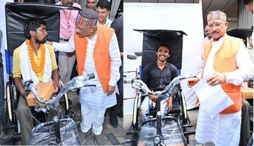 रायपुर / शौर्यपथ / जनदर्शन कार्यक्रम में बलराम और रोहित को मुख्यमंत्री श्री विष्णु देव साय के हाथों आईस बॉक्स युक्त ट्रायसाइकिल की सौगात मिली। दिव्यांग बलराम और रोहित आज मुख्यमंत्री निवास कार्यालय रायपुर में आयोजित मुख्यमंत्री के जनदर्शन कार्यक्रम में पहुंचे थे। मुख्यमंत्री से मुलाकात कर उन्होंने आईस बॉक्स युक्त ट्रायसाइकिल दिलाए जाने का आग्रह किया, ताकि इसका उपयोग फेरी वाले रोजगार व्यवसाय में कर सके अपना जीवकोपार्जन कर सके। दिव्यांग बलराम बेेमेतरा जिले के परसबोड़ और रोहित कुमार भोथीडीह के रहने वाले है। मुख्यमंत्री ने दोनों दिव्यांग युवाओं की रोजगार व्यवसाय करने की ललक की सराहना की और उन्हें आईस बॉक्स युक्त ट्रायसाइकिल प्रदान करने के साथ ही उन्हें शुभकामनाएं दी।