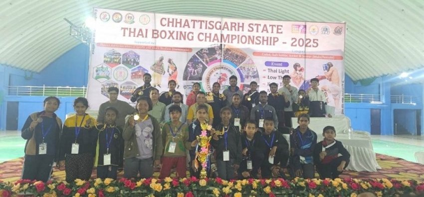 दंतेवाड़ा जिले के पुराना मार्केट इनडोर स्टेडियम में हाल ही में आयोजित राज्य स्तरीय थाई बॉक्सिंग प्रतियोगिता में दुर्ग जिले की कारा-कु-जु-बो-काई काॅन कराते डो मार्शल आर्ट्स फुल कांटेक्ट कराते संस्था के खिलाड़ियों ने शानदार प्रदर्शन करते हुए पहली बार भागीदारी में ही चैम्पियन ट्रॉफी हासिल कर तृतीय स्थान प्राप्त किया।