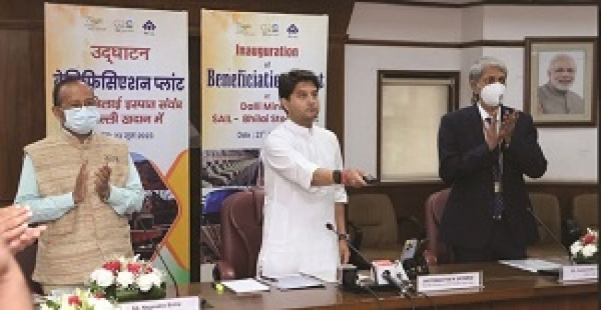 दुर्ग / शौर्यपथ / केंद्रीय इस्पात और नागरिक उड्डयन मंत्री, ज्योतिरादित्य एम. सिंधिया ने 23 जून को भिलाई स्टील प्लांट की दल्ली माइंस में एक नए बेनिफेसिएशन प्लांट (सिलिका रिडक्शन प्लांट) का वर्चुअल उद्घाटन किया। इस अवसर पर श्री सिंधिया ने अपनी तरह की इस पहली तकनीकी पहल पर सेल के प्रयासों की सराहना करते हुए, पिछले नौ वर्षों में इस्पात द्वारा उद्योग उठाए गए बड़े कदमों का उल्लेख किया। इस अवधि के दौरान देश में इस्पात उत्पादन और प्रति व्यक्ति इस्पात खपत में अभूतपूर्व वृद्धि देखी गई है और भारत दुनिया का दूसरा सबसे बड़ा इस्पात उत्पादक बन गया है। यह बेनिफेसिएशन प्लांट अधिक सिलिका गैंग वाले 1 मिमी से कम आकार के लौह अयस्क से सिलिका की मात्रा कम करने के लिए स्थापित किया गया है। यह अत्याधुनिक बेनिफेसिएशन प्लांट उपकरणों से सुसज्जित है और इसका उद्देश्य भिलाई इस्पात संयंत्र को आपूर्ति किए जाने वाले लौह अयस्क की गुणवत्ता को बढ़ाना है, जिससे ब्लास्ट फर्नेस से हॉट मेटल के वार्षिक उत्पादन में वृद्धि होगी, और साथ में कोक की खपत और कार्बन उत्सर्जन में कमी आएगी। मंत्री श्री सिंधिया के नेतृत्व में, इस्पात मंत्रालय का ध्यान घरेलू इस्पात उद्योग में डी-कार्बोनाइजेशन को बढ़ावा देने और इस्पात उद्योग के सहयोग से हरित इस्पात उत्पादन के लिए दीर्घकालिक रोडमैप तैयार करने पर केंद्रित है। सेल खुद कार्बन न्यूट्रिलिटी के राष्ट्रीय लक्ष्य के साथ जुड़ा हुआ है, दल्ली-राजहरा खदान में बेनिफेसिएशन प्लांट (सिलिका रिडक्शन प्लांट) इस दिशा में एक महत्वपूर्ण कदम है। इसके अलावा, यह प्लांट निम्न श्रेणी के लौह अयस्क को बेनिफेसिएशन के जरिये उपयोगी बनाकर इस्तेमाल करने के सेल के प्रयास का एक हिस्सा है। भिलाई स्टील प्लांट के दल्ली और राजहरा समूह की 60 साल पुरानी खदानों में लौह अयस्क भंडार की गुणवत्ता तेजी से कम हो गई है और एक अध्ययन के जरिये तथ्य सामने आया है कि ब्लास्ट फर्नेस में अनुकूलतम उपयोग वाले वांछित ग्रेड के लिए 1 मिमी से कम आकार के लौह अयस्क को परिष्कृत करने की आवश्यकता है। दल्ली में मौजूदा क्रशिंग, स्क्रीनिंग और वॉशिंग (सीएसडब्ल्यू) वेट प्लांट के साथ यह लगभग 149 करोड़ रुपये से अधिक के निवेश से बना सिलिका रिडक्शन प्लांट लगाया गया है। यह परियोजना विभिन्न राज्य सरकारी एजेंसियों, स्थानीय प्रशासन और निर्वाचित प्रतिनिधियों की मदद से पूरी की गई है।